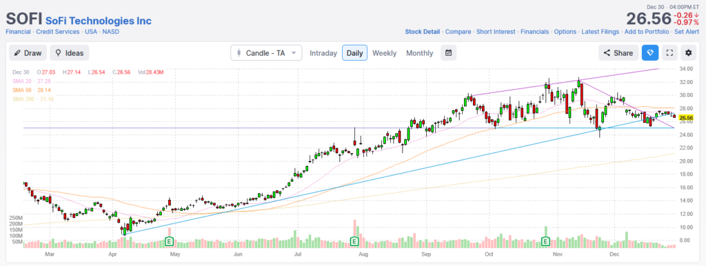Closed SOFI position at end of year after holding from a covered call position.